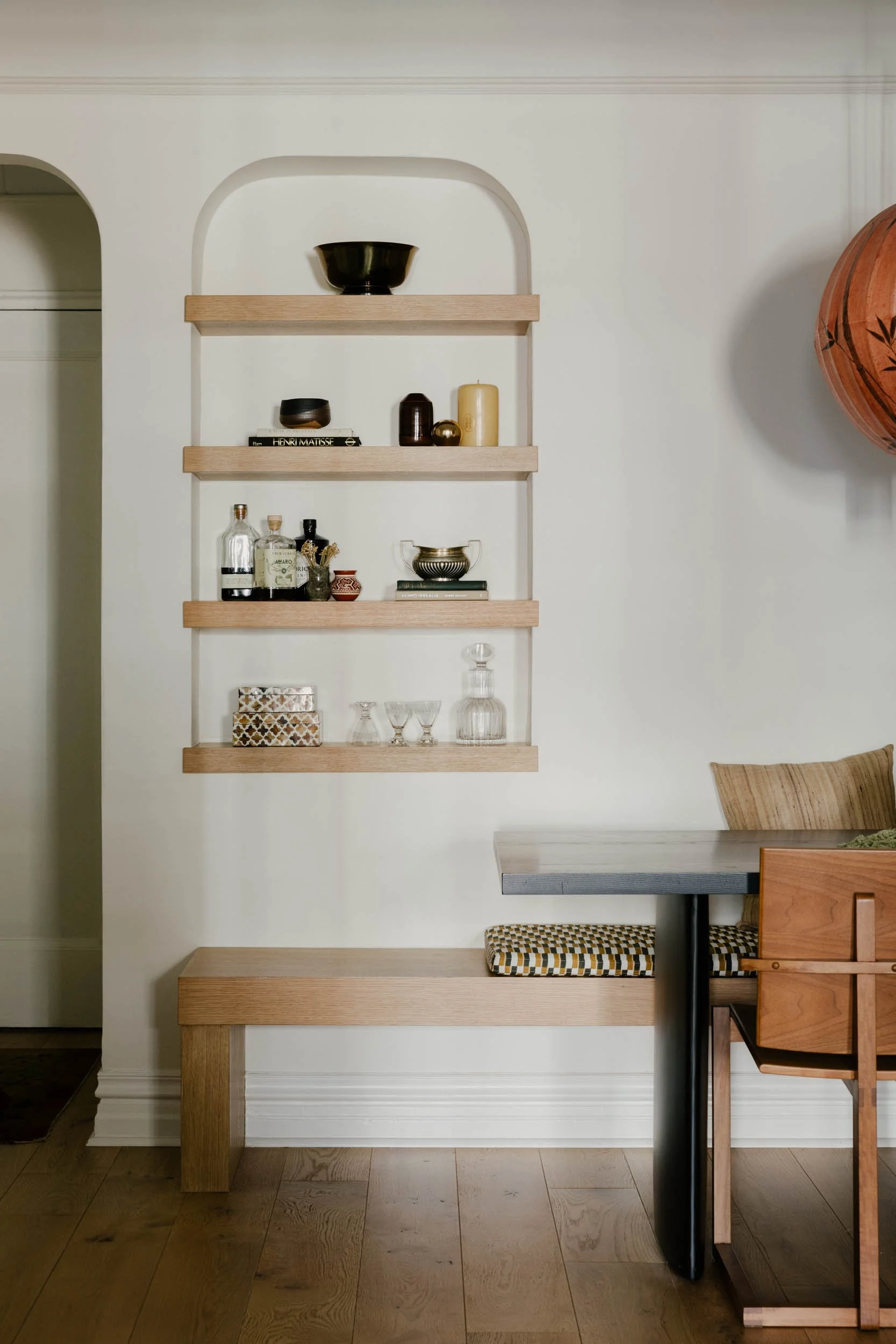 The original parquet wood floors sustained damage and were replaced with a more modern wide-plank white oak. The original arches were however kept and enhanced with a subtle two-toned paint treatment above and below the existing picture-rail molding.